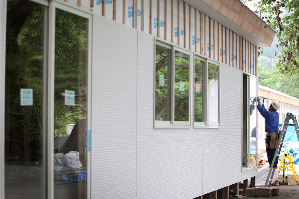 | 16. The builder is working on temporary housing for evacuees affected by the disaster on March 11 in Otsuchi. (Kiyoshi Ota / Getty Images) |